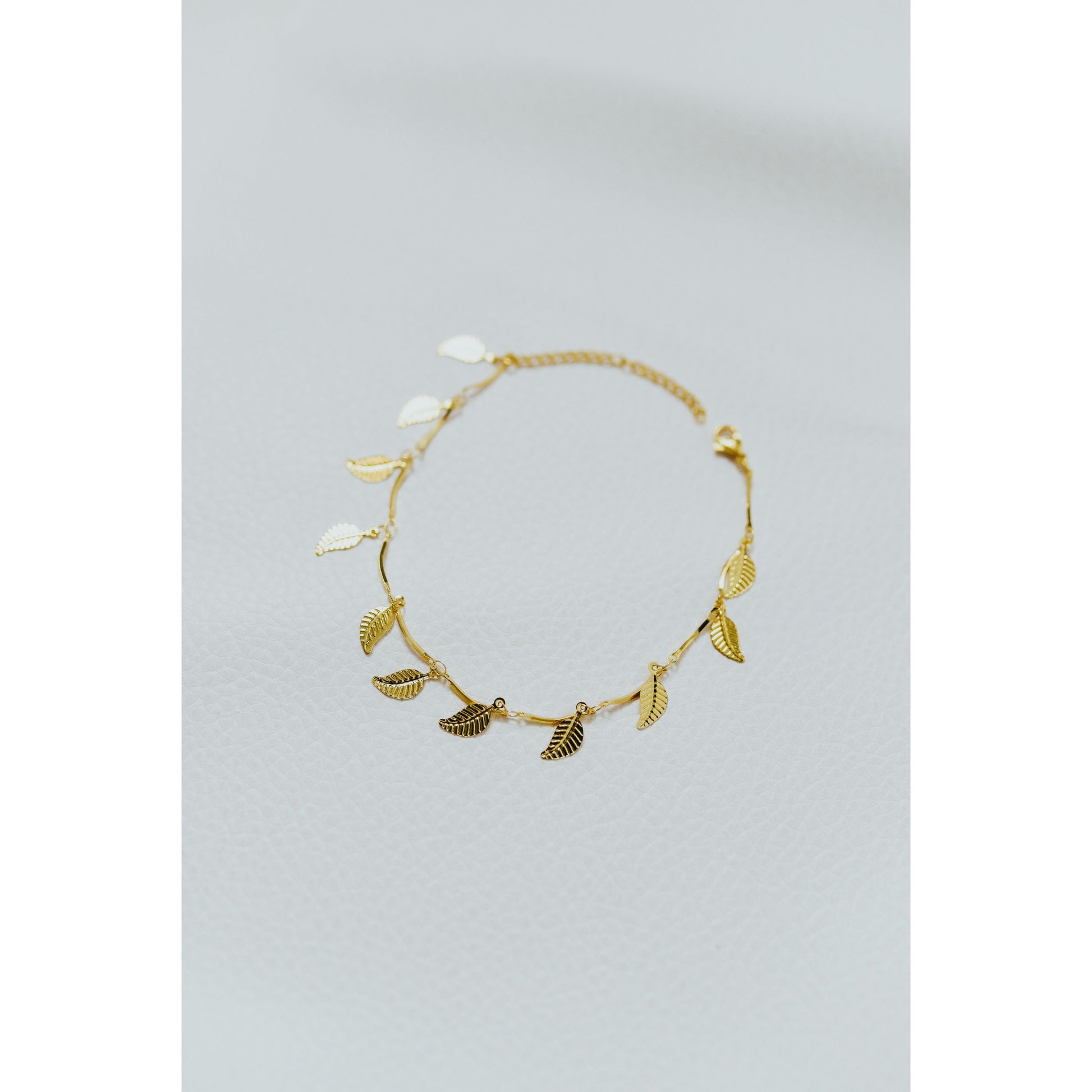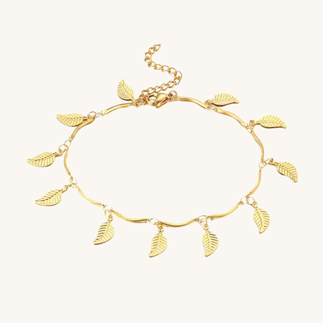Piagon - pozlacený náramek na nohu s přívěsky lístků