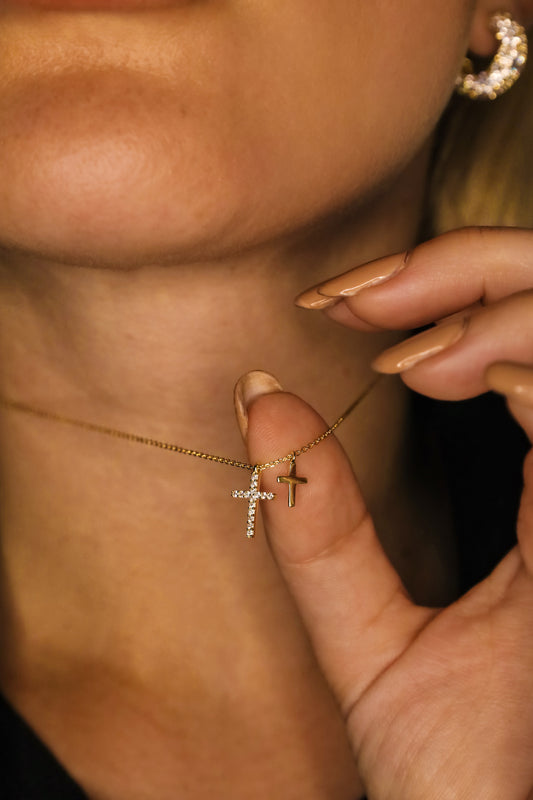 VyprodánoTřpytivý Náhrdelník s 2 křížky a kamínky