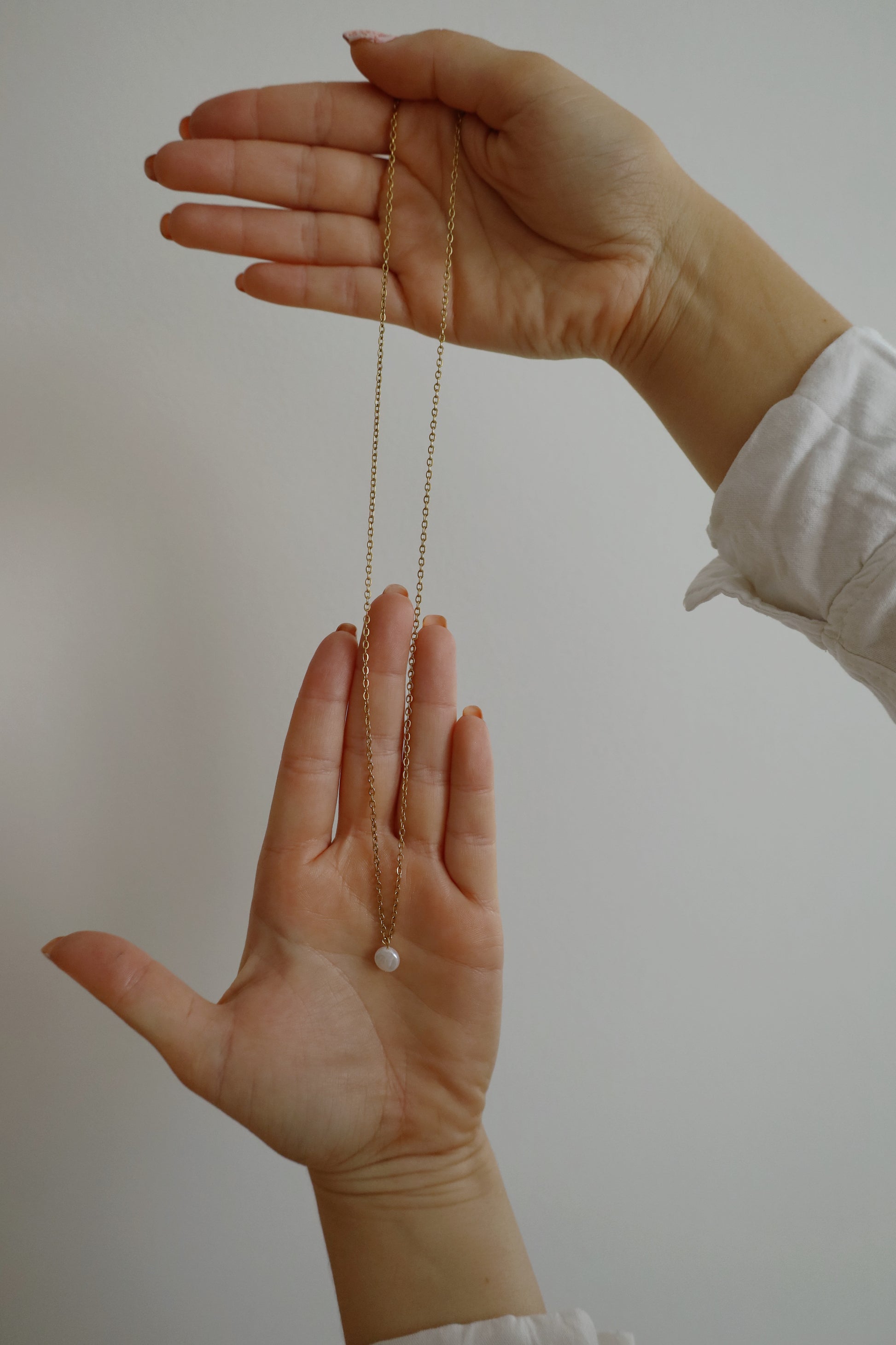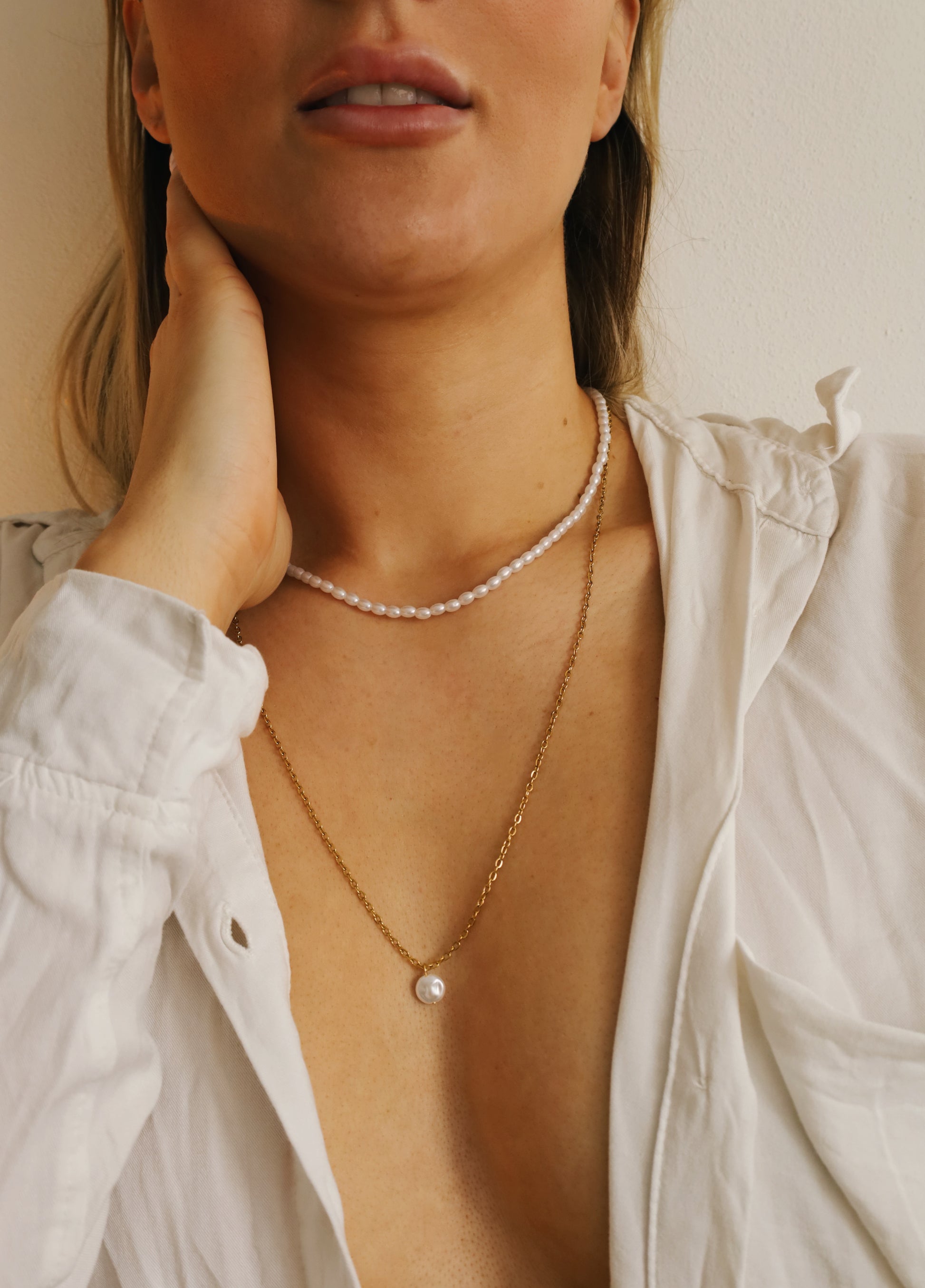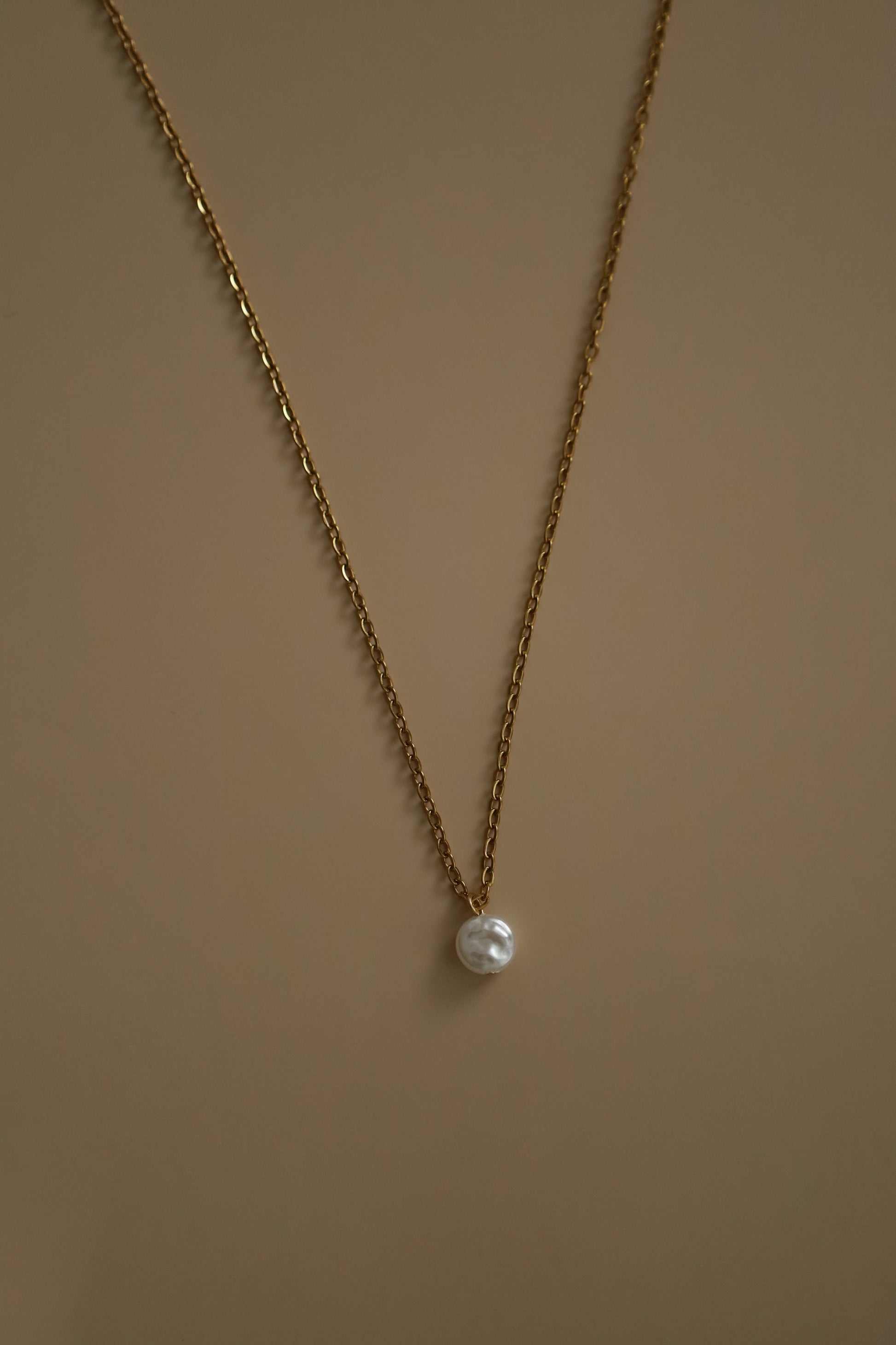 Dlouhý nerzový náhrdelník zlaté barvy s perlou - UNIVERSE