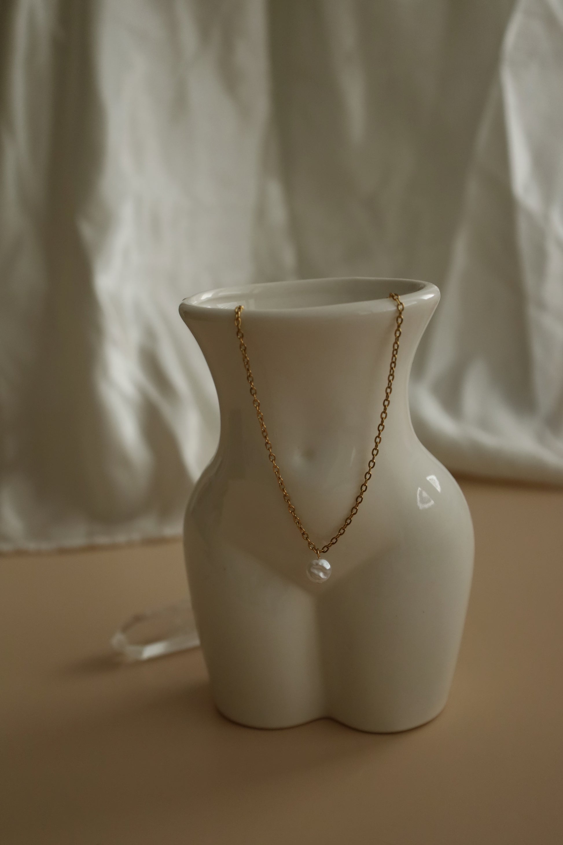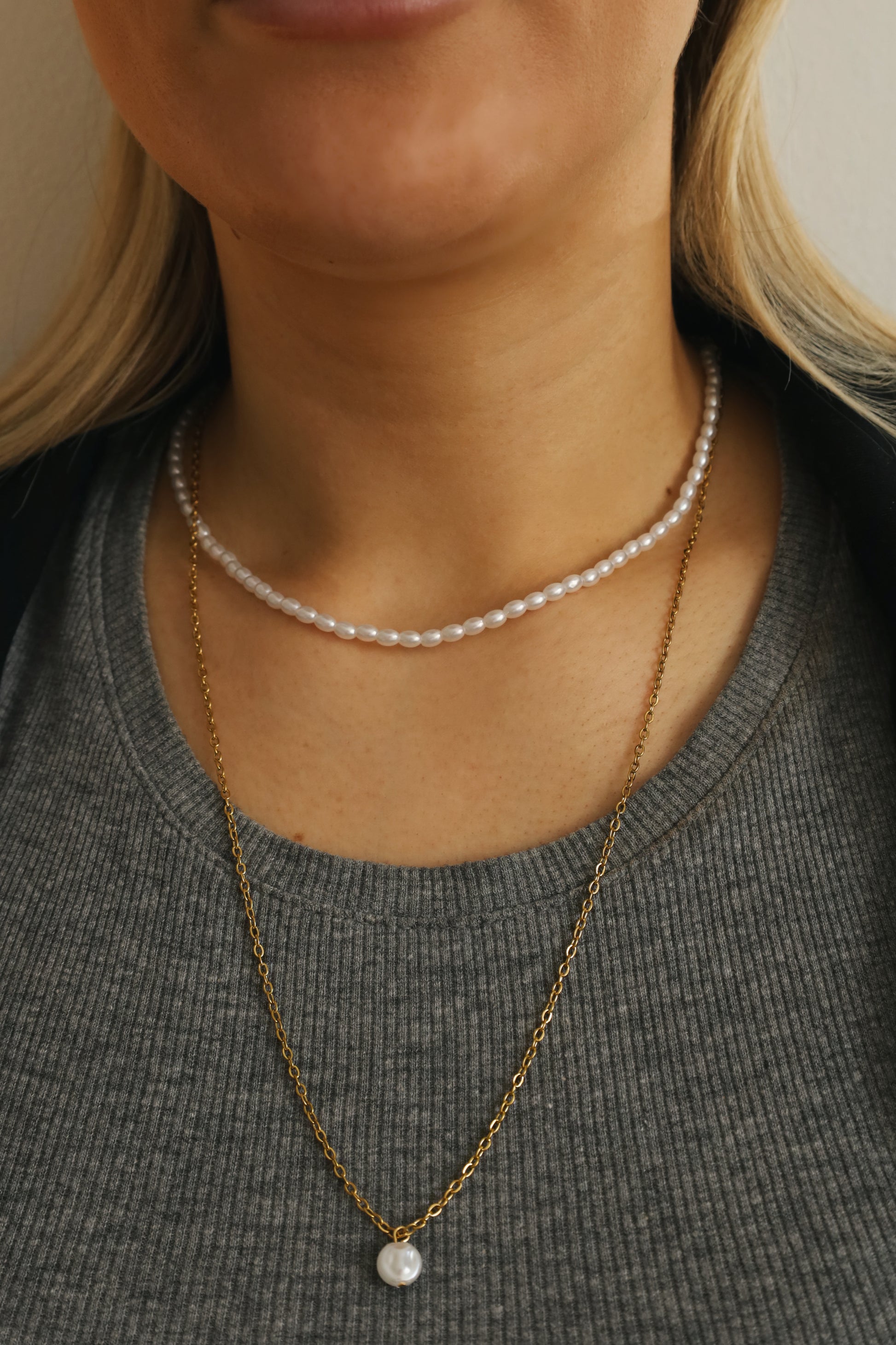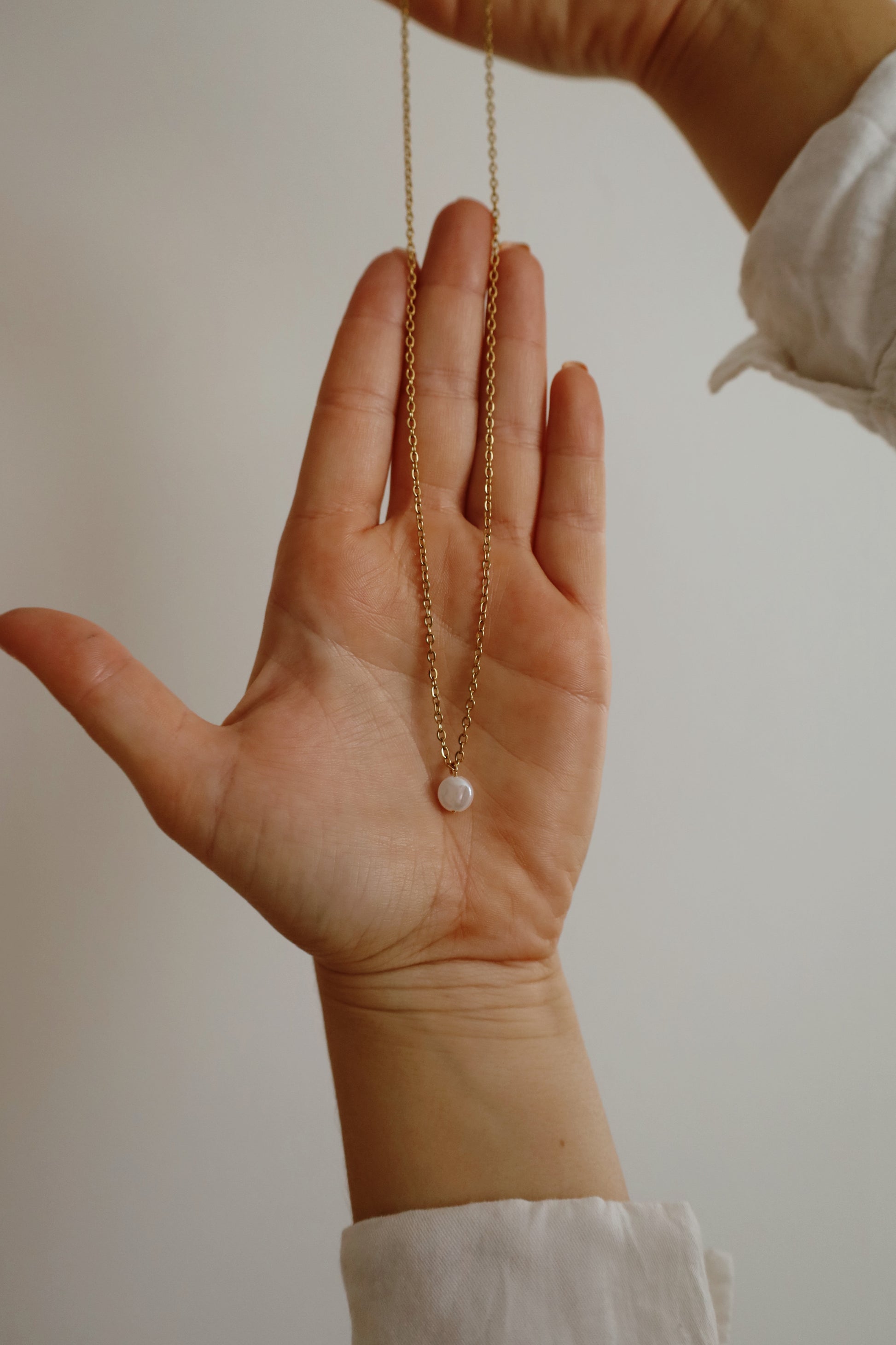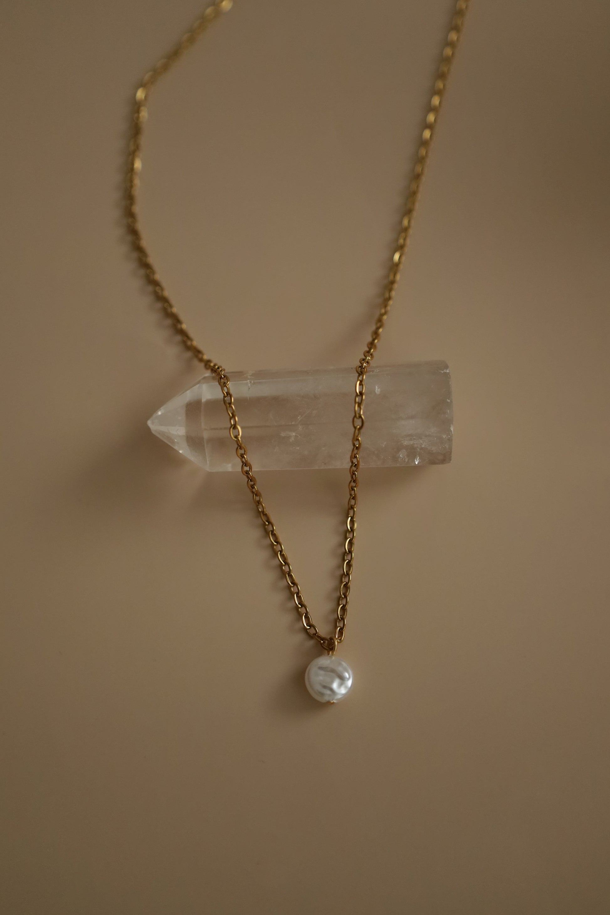 Dlouhý nerzový náhrdelník zlaté barvy s perlou - UNIVERSE