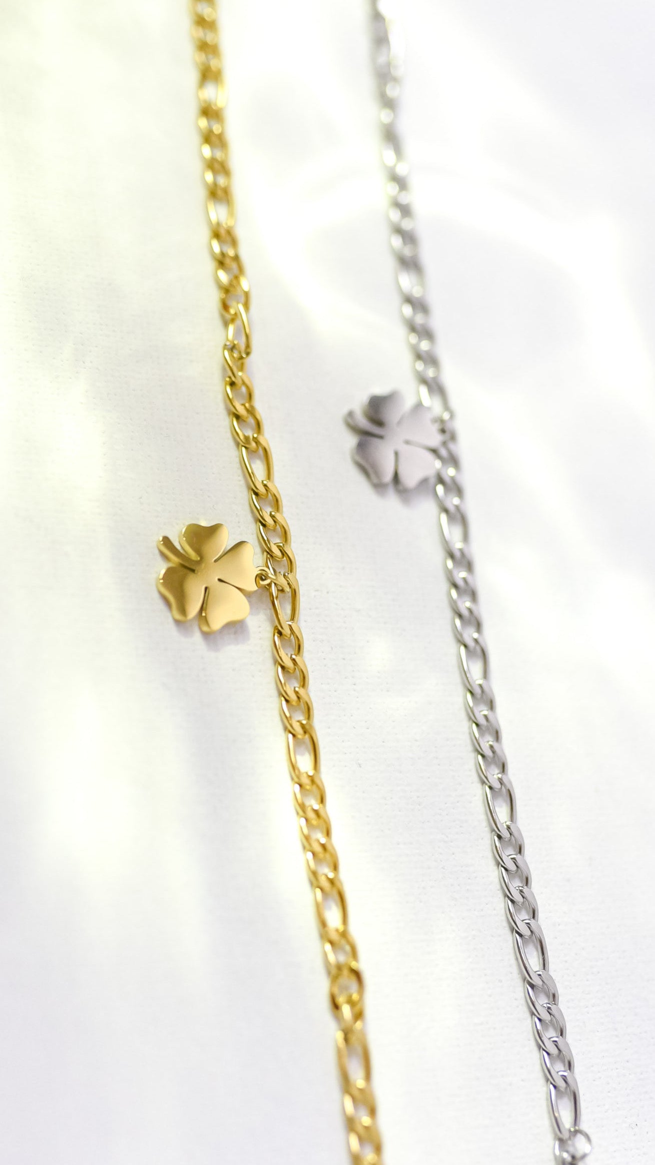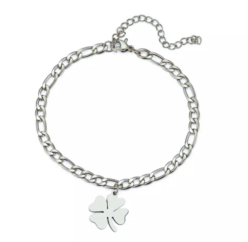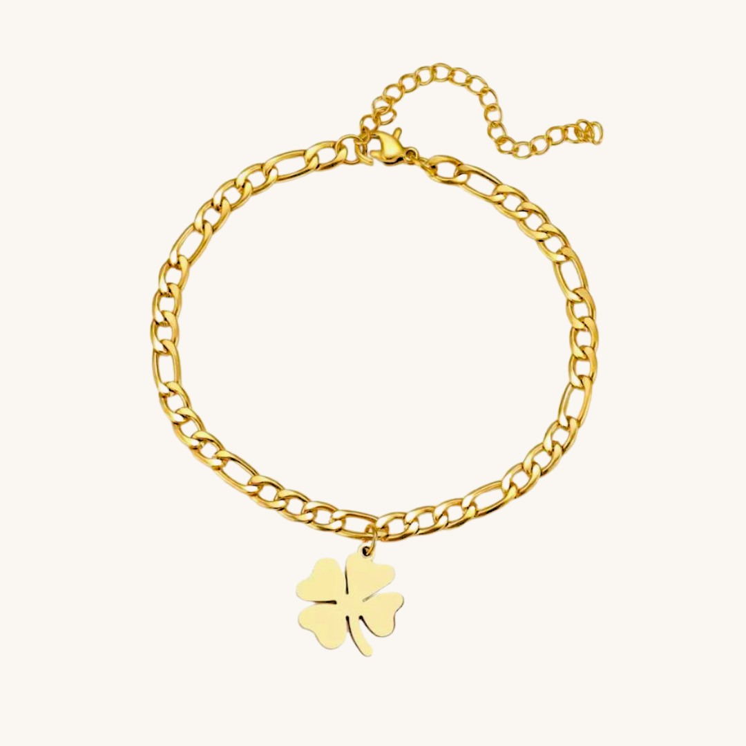 Lucky - pozlacený náramek na nohu s přívěskem čtyřlístku