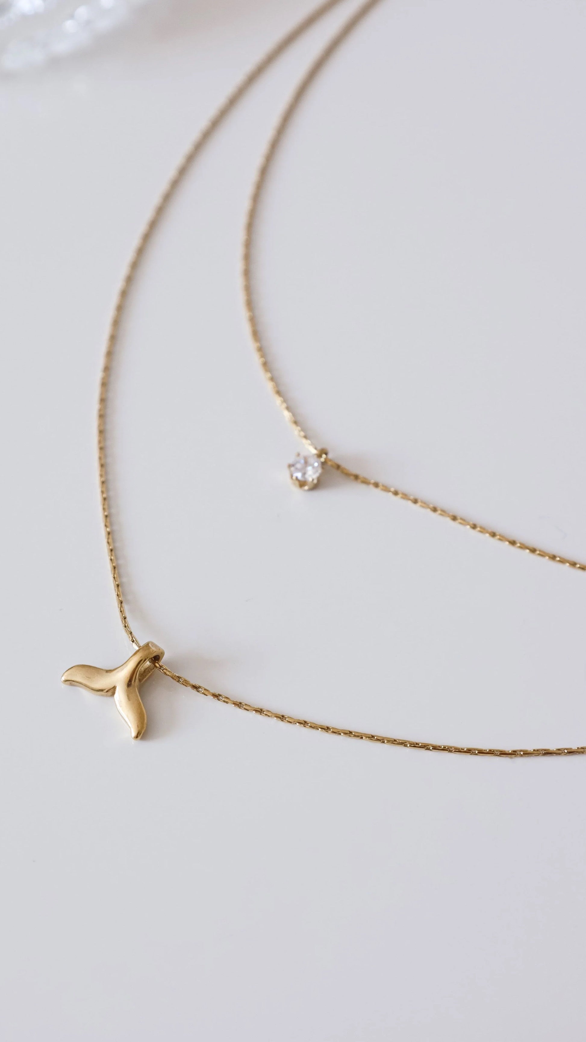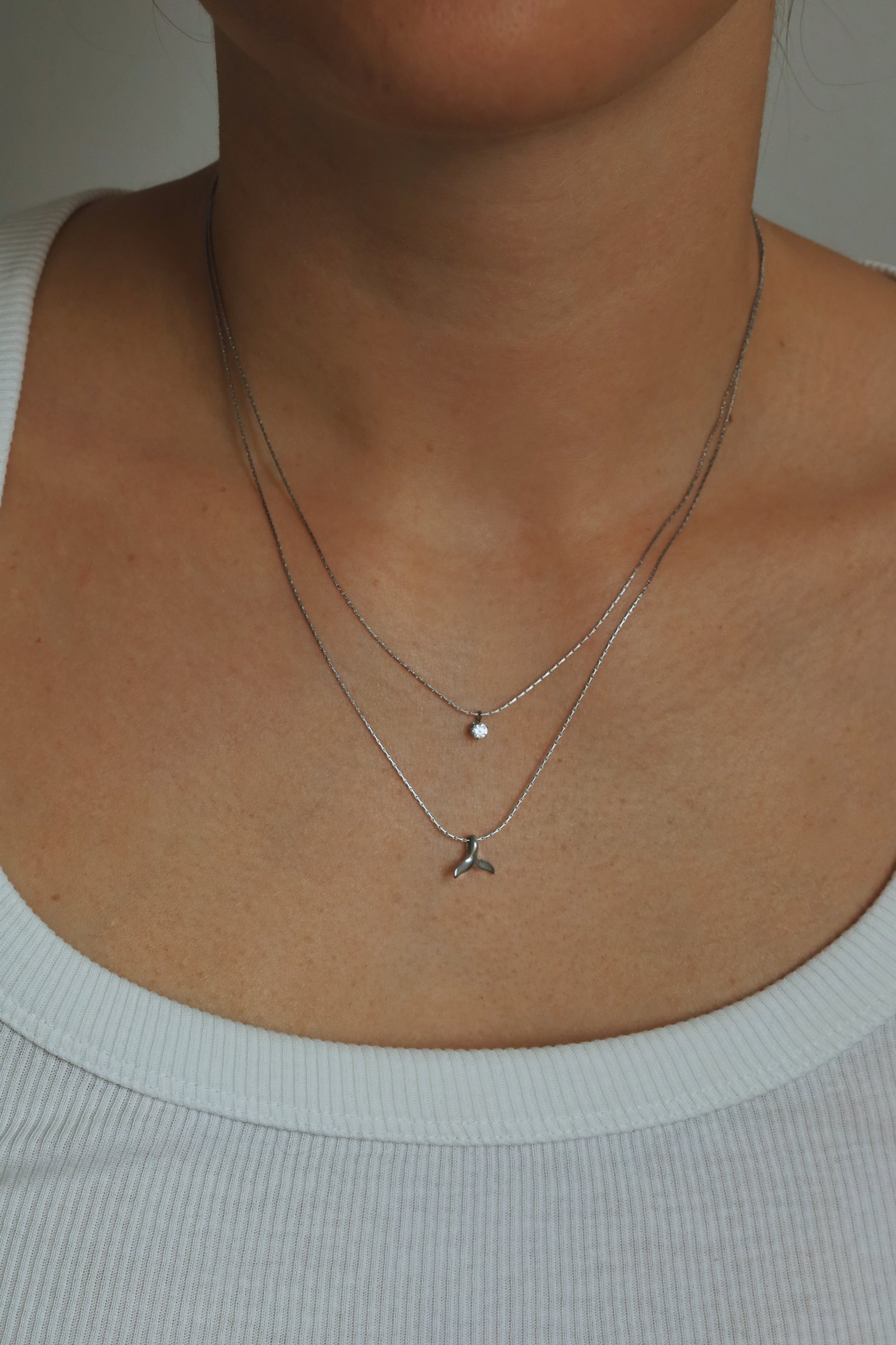 WHALE - dvojitý náhrdelník s ocasem velryby a zirkonem