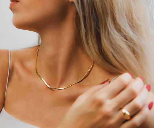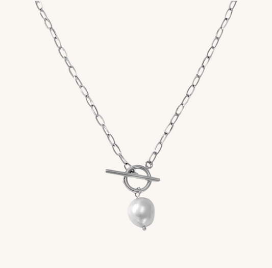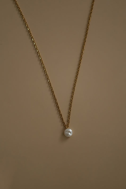 Nerezový zlatý náhrdelník s perlou a zapínáním WAKA