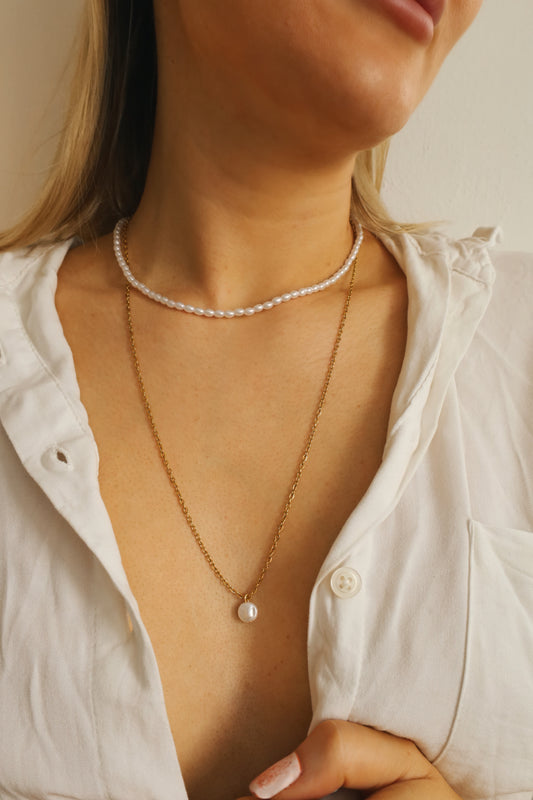 Perličkový náhrdelník VENUS/2 se zlatou kuličkou