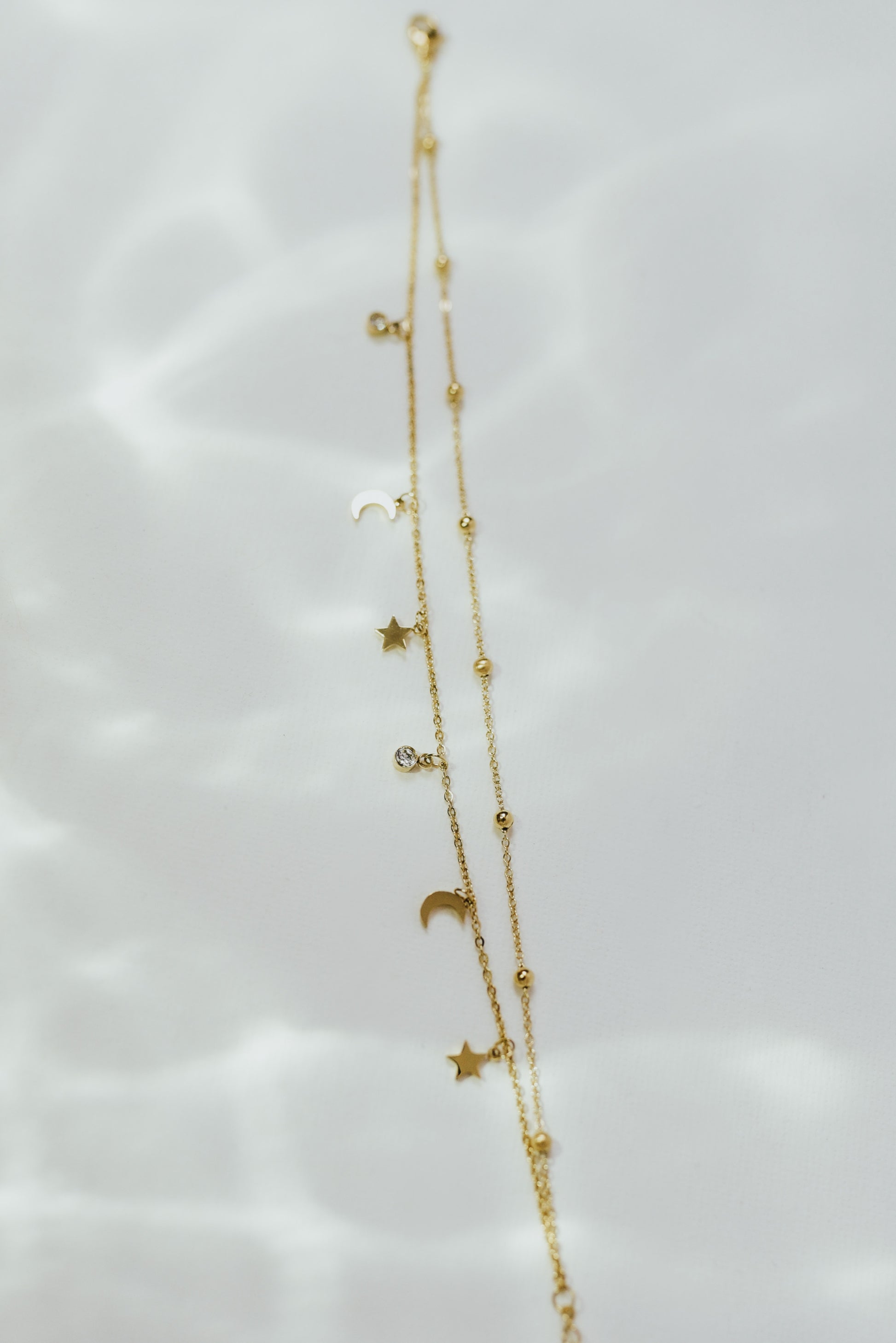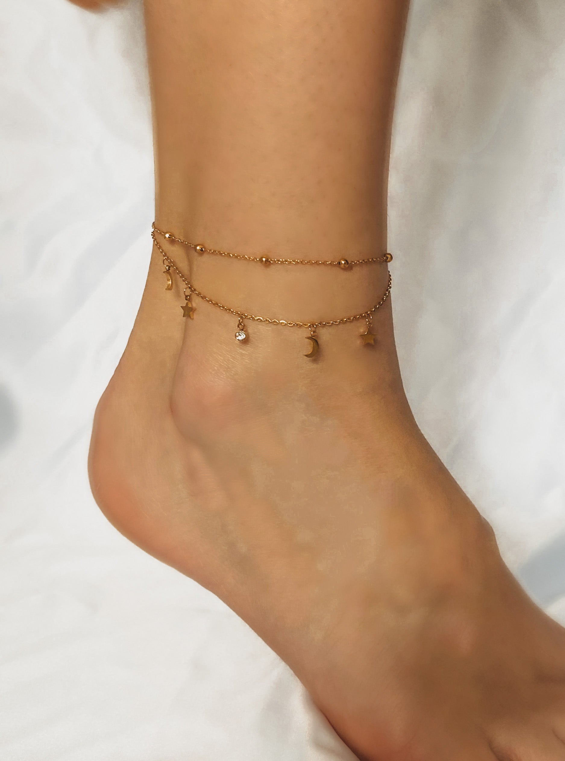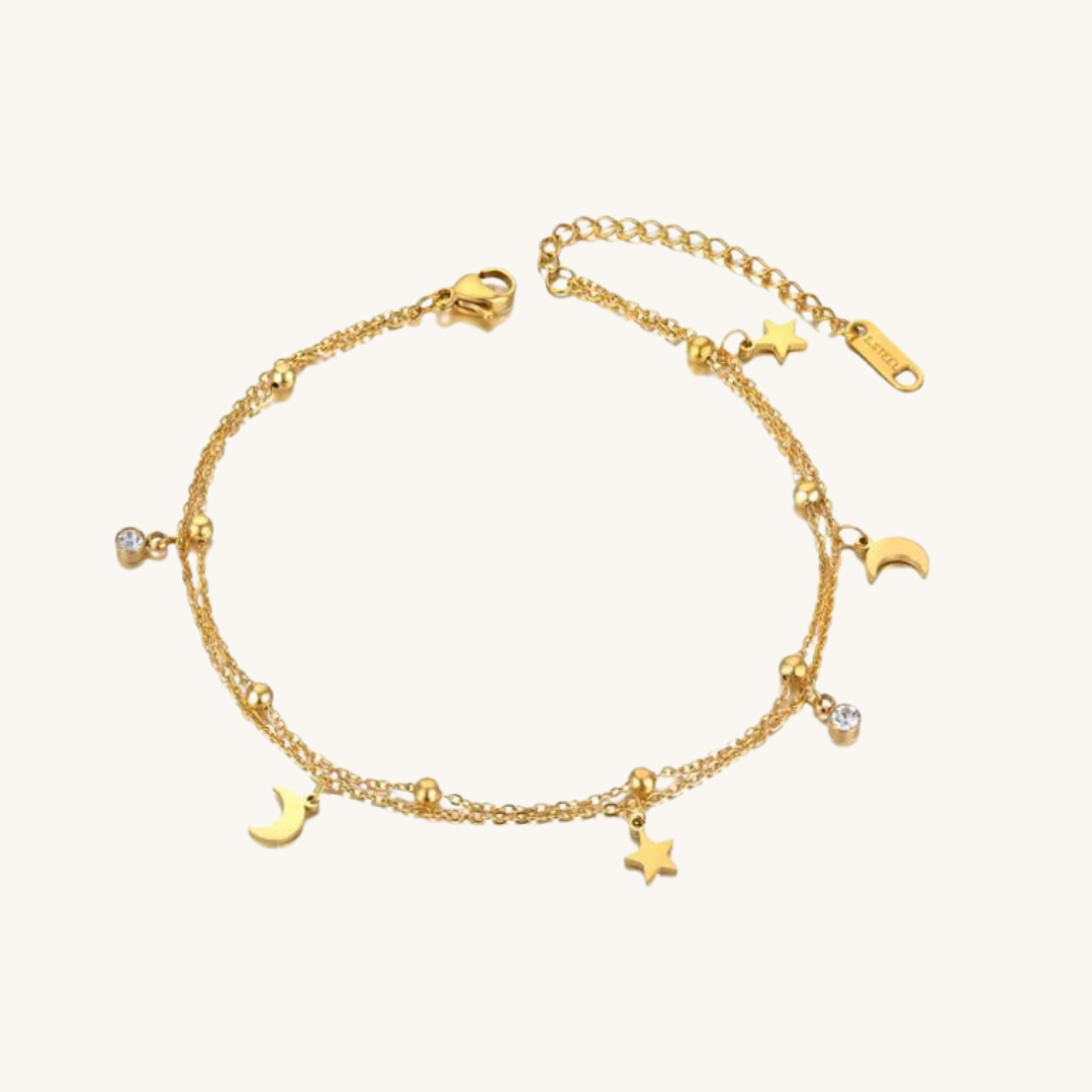 Galaxy - pozlacený náramek na nohu s přívěsky hvězd a měsíčků