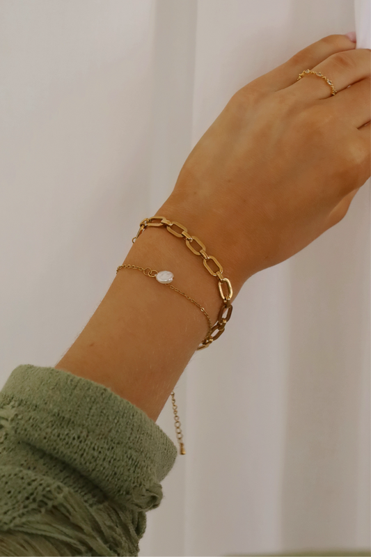 • Nerezový zlatý náhrdelník s perlou a zapínáním WAKA