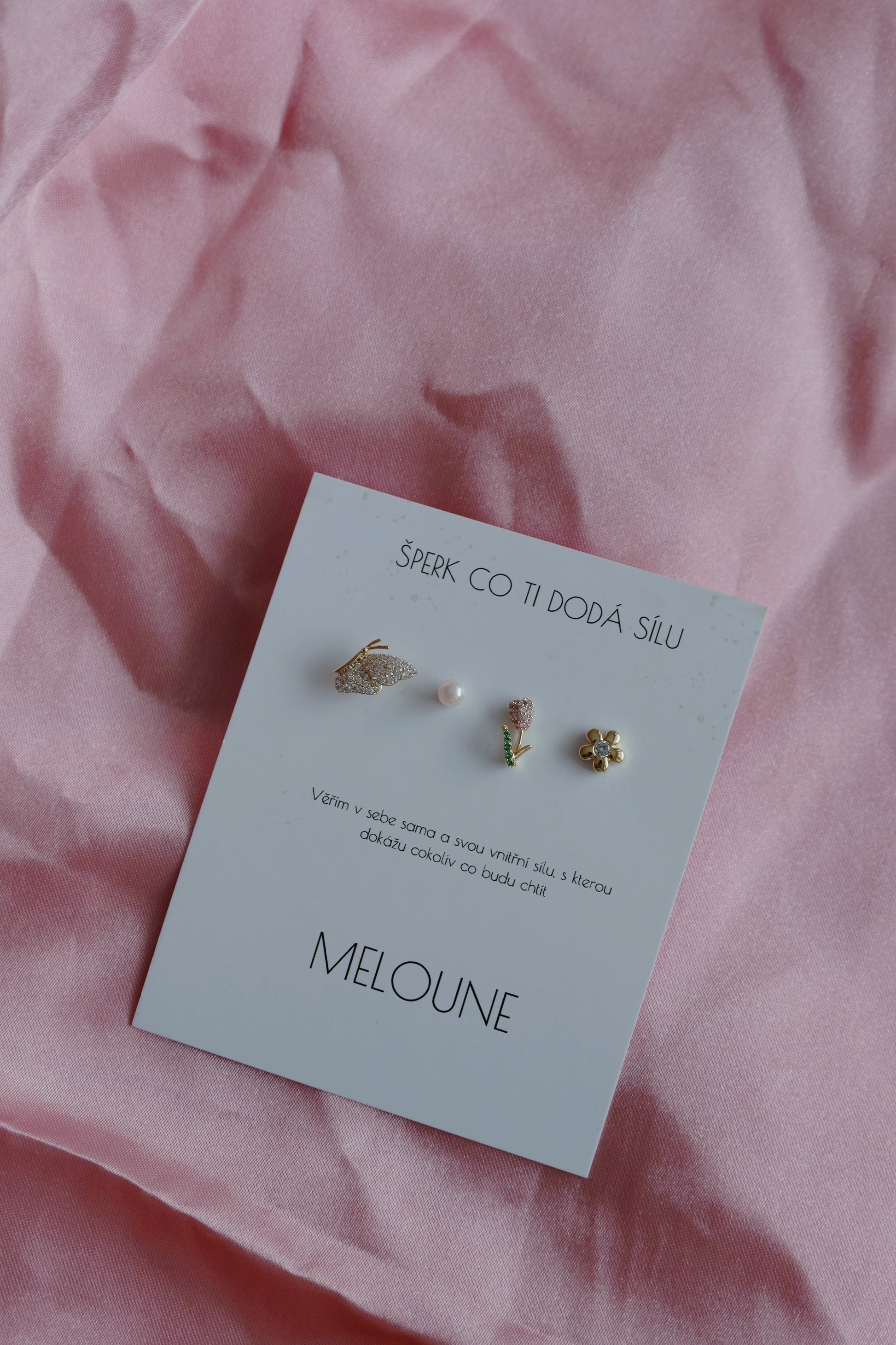 Set 4 pozlacených náušnic (motýlek, 2x kytička, perla) - ALICE GARDEN