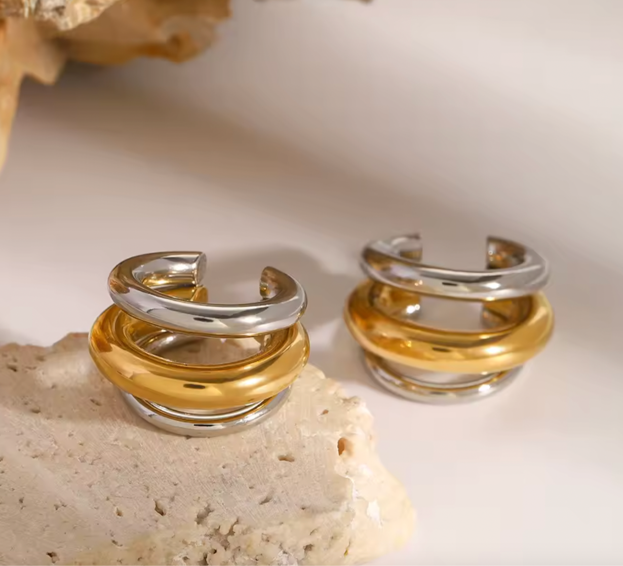 Earcuff Zlato-Stříbrný JUMPE Nerezová ocel