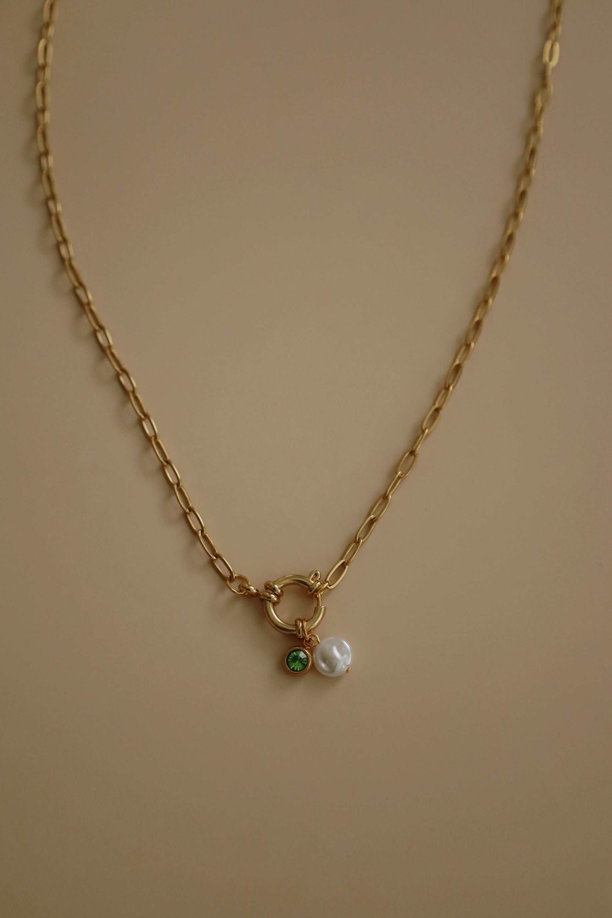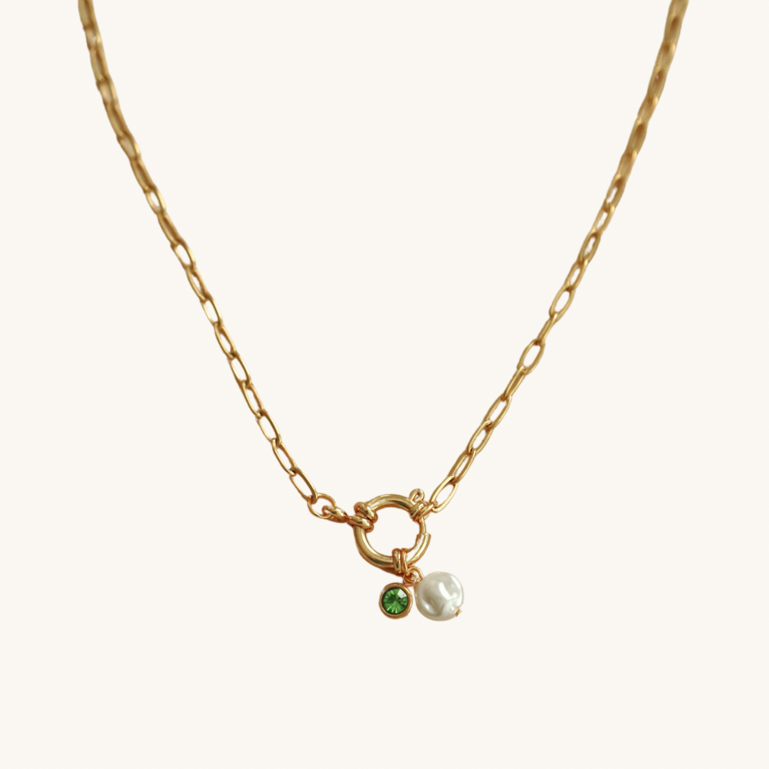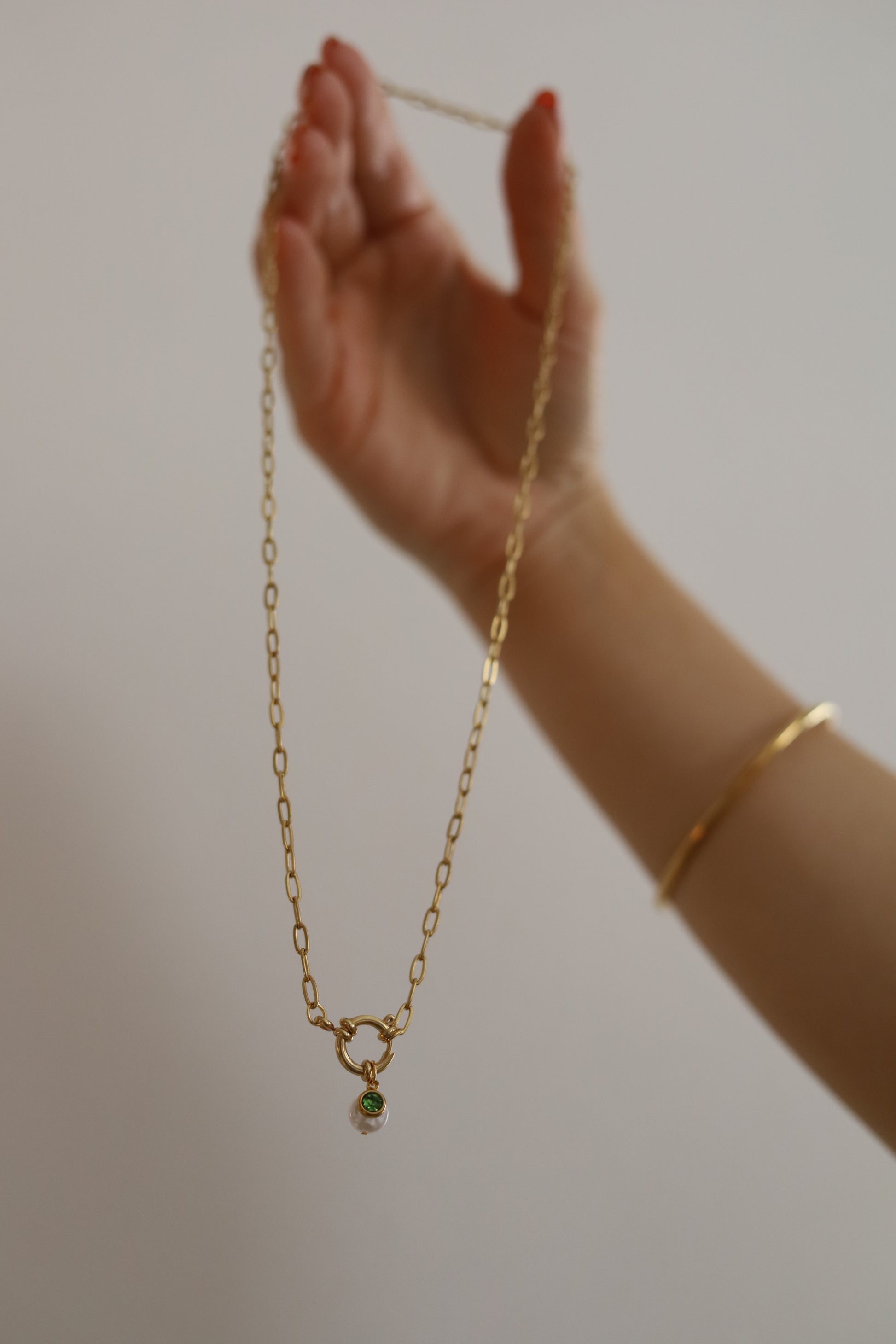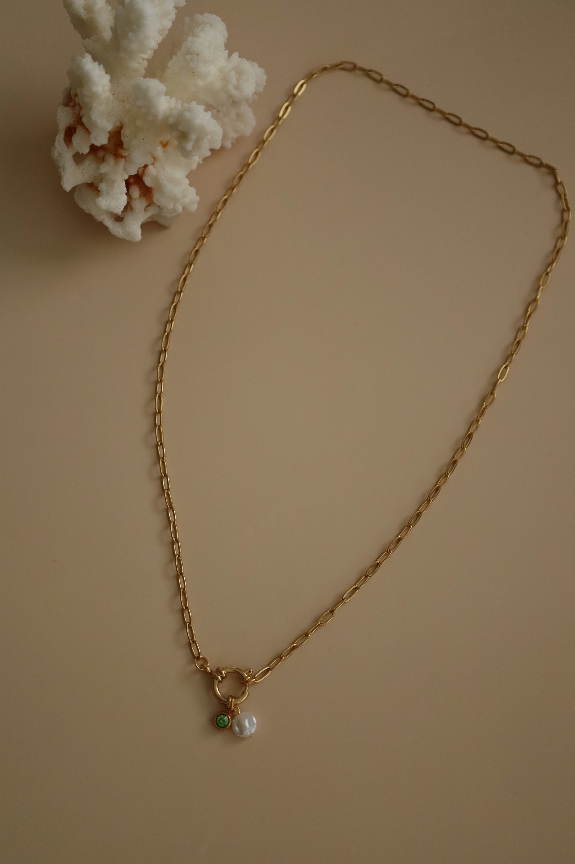 Ženský nerezový náhrdelník s perlou a zeleným kamenem - FRIDA