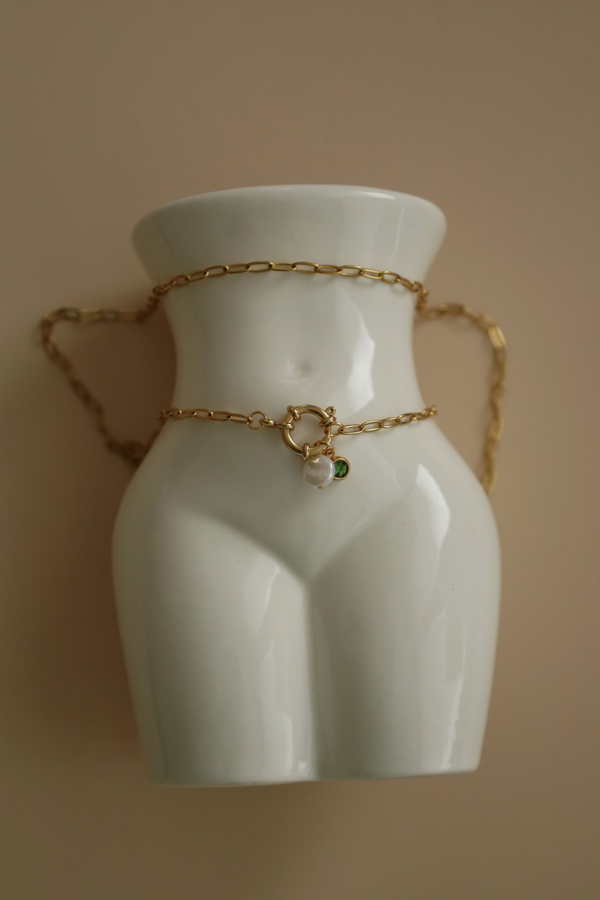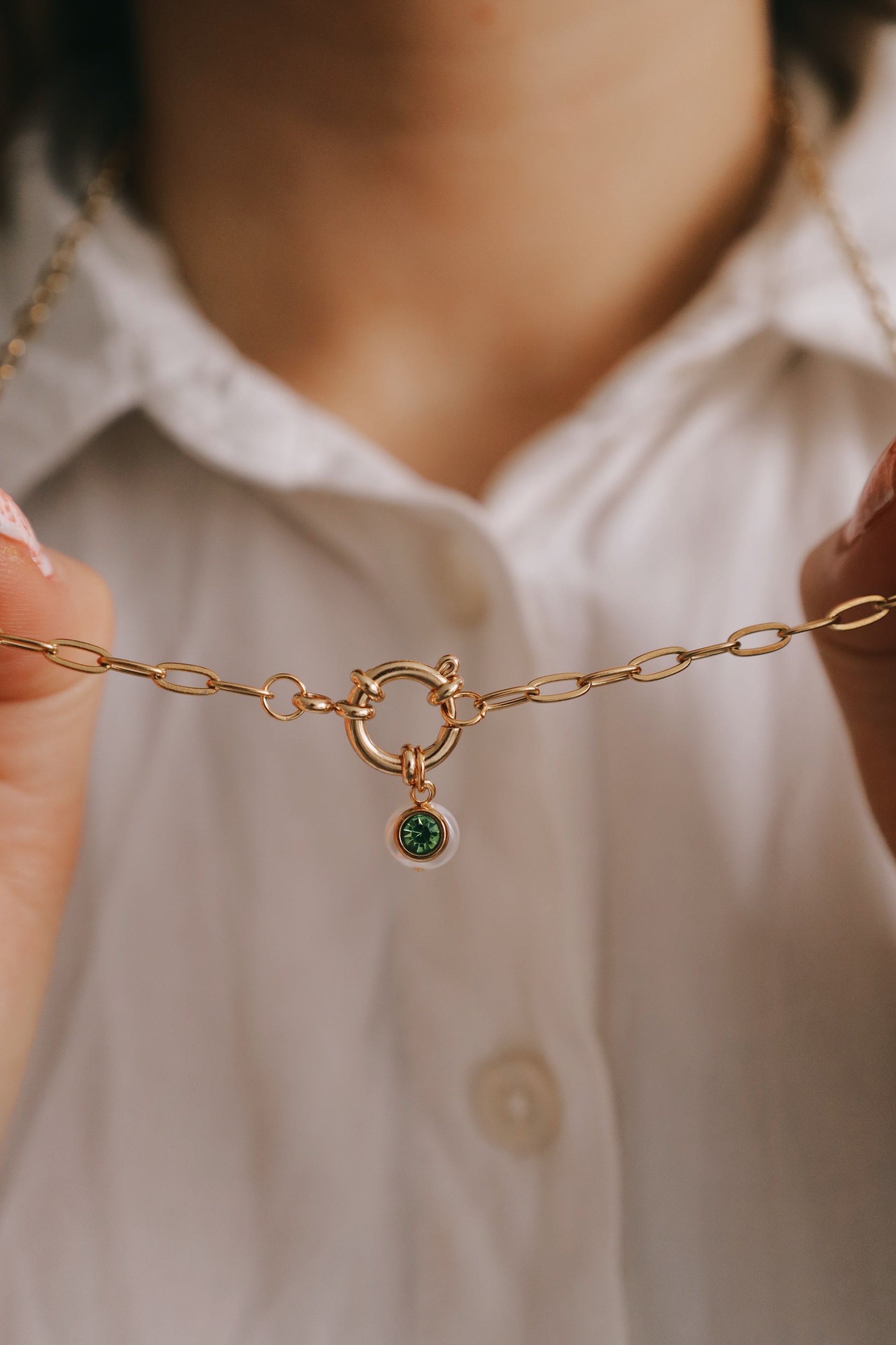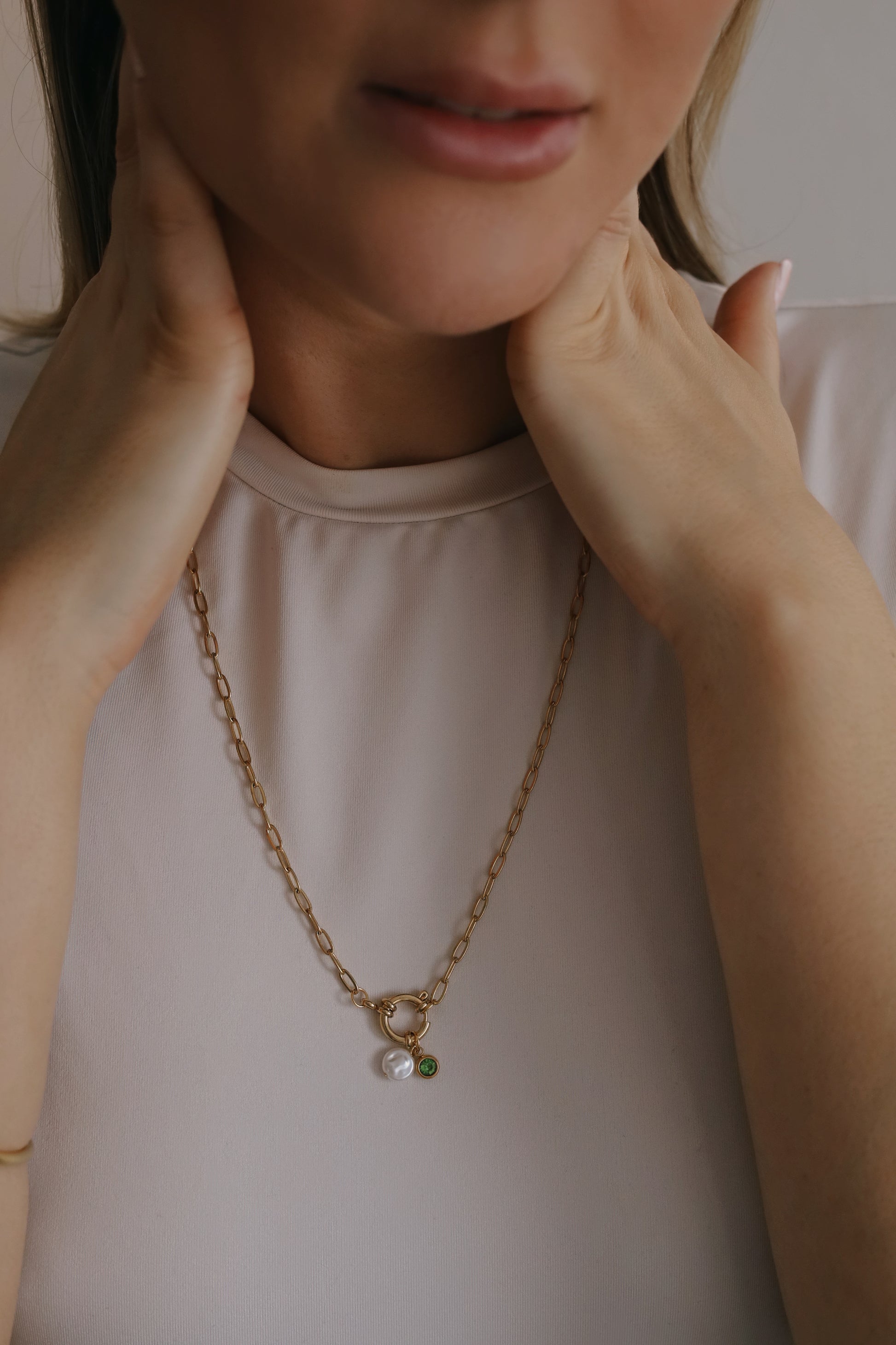 Ženský nerezový náhrdelník s perlou a zeleným kamenem - FRIDA