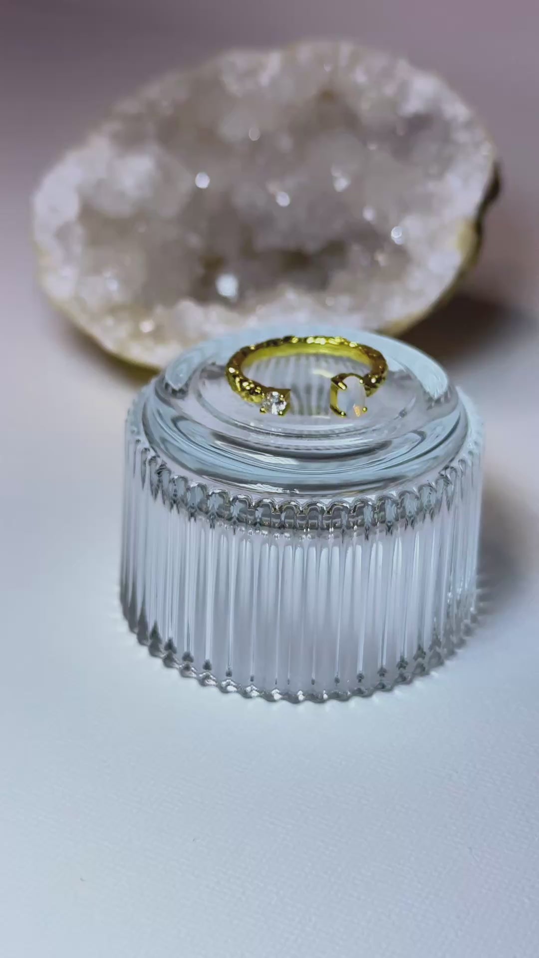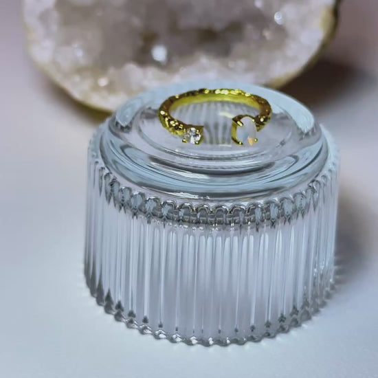 Ein offener Ring mit einer mondsteinähnlichen Stein-Rohoberfläche